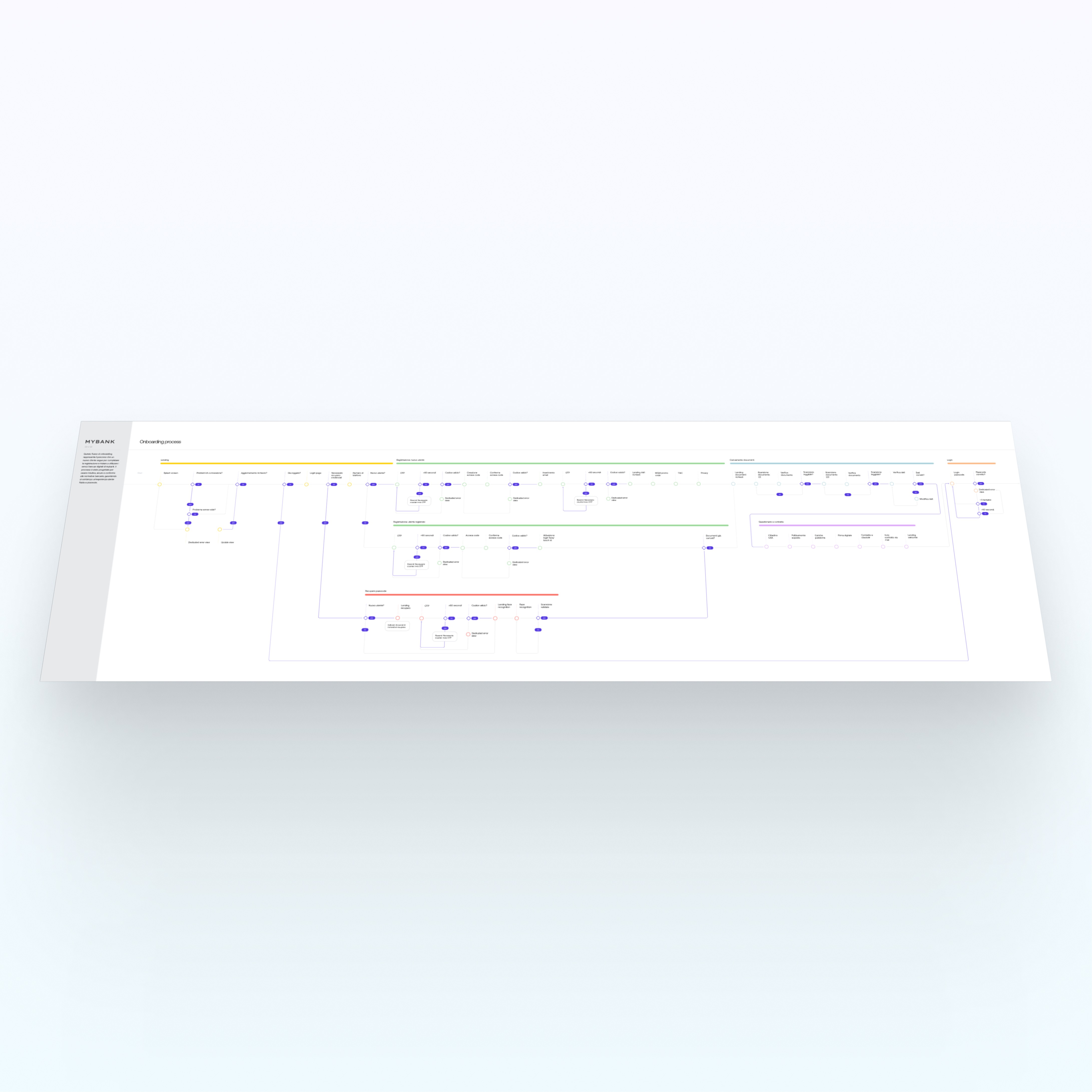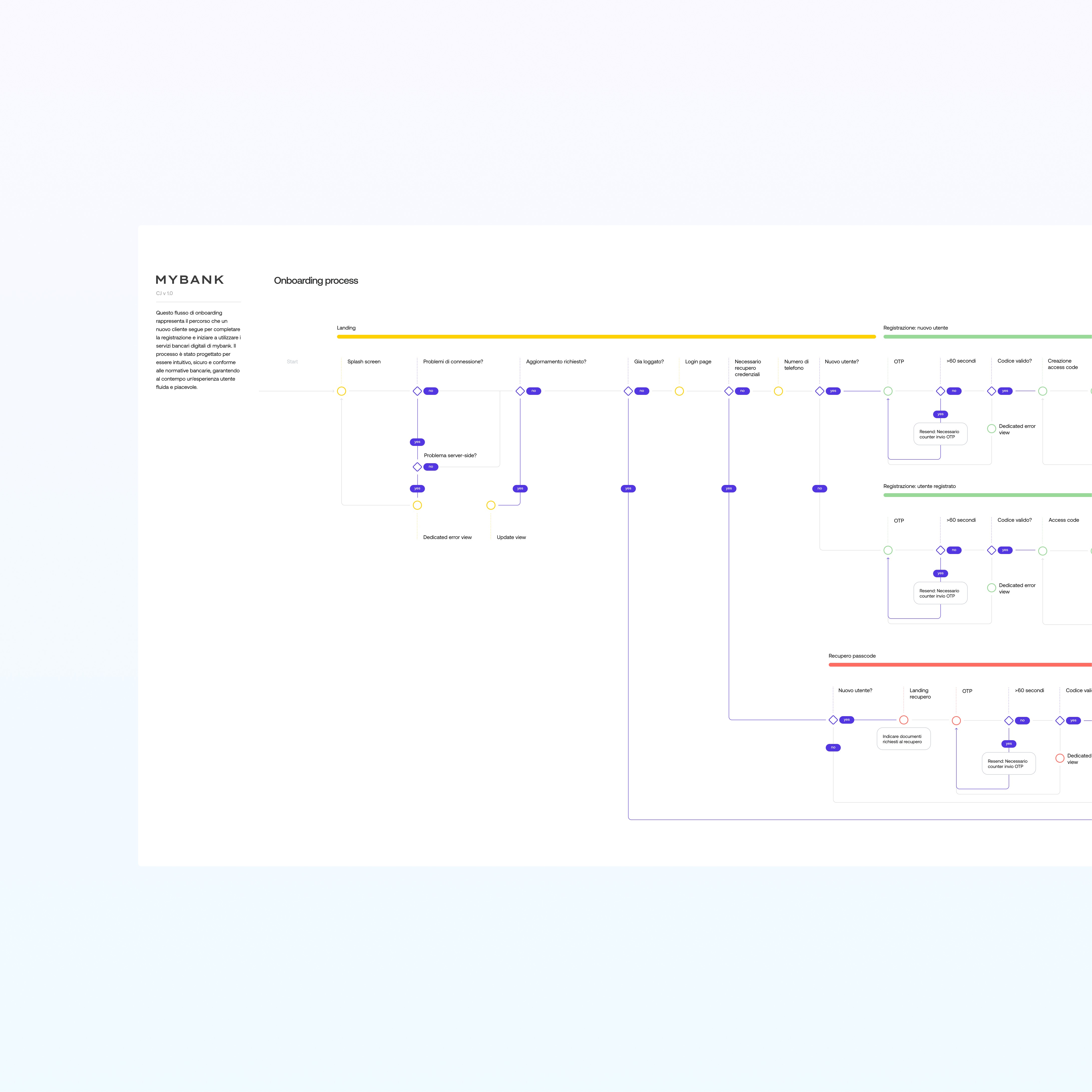 A significant part of the project focused on the onboarding experience. I designed a comprehensive onboarding flow that maps different user profiles, financial behaviors and edge cases, not just happy paths. This process helped identify potential friction points early and informed the design of a more adaptive and resilient system. Alongside UI screens, I documented full UX flows to show how users move through the experience over time.